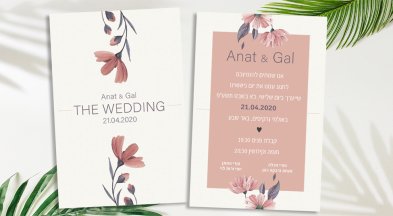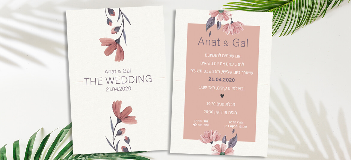 |הזמנת בוטיק בשקל בעיצוב של פרחים בעיצוב מראה חוזר (מעלה ומטה), ניתן להדפיס על נייר מיוחד למראה טבעי.