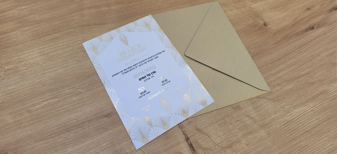הזמנה יוקרתית פויל זהב ומעטפה זהב