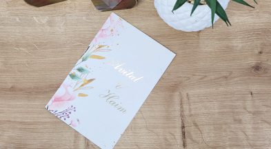 הזמנה לחתונה זהב קרם ופרחים ורוד בייבי