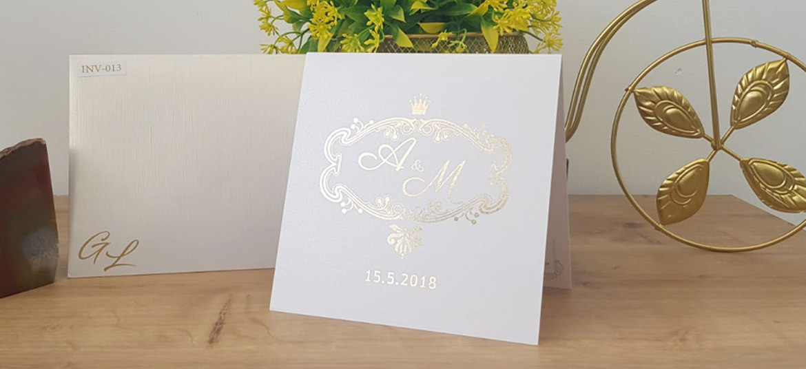|הזמנה יוקרתית נפתחת בעיצוב אלגנטי עם עיטורי פויל בצבעי זהב וכסף מודפס בהדפסה דיגיטלית איכותית.