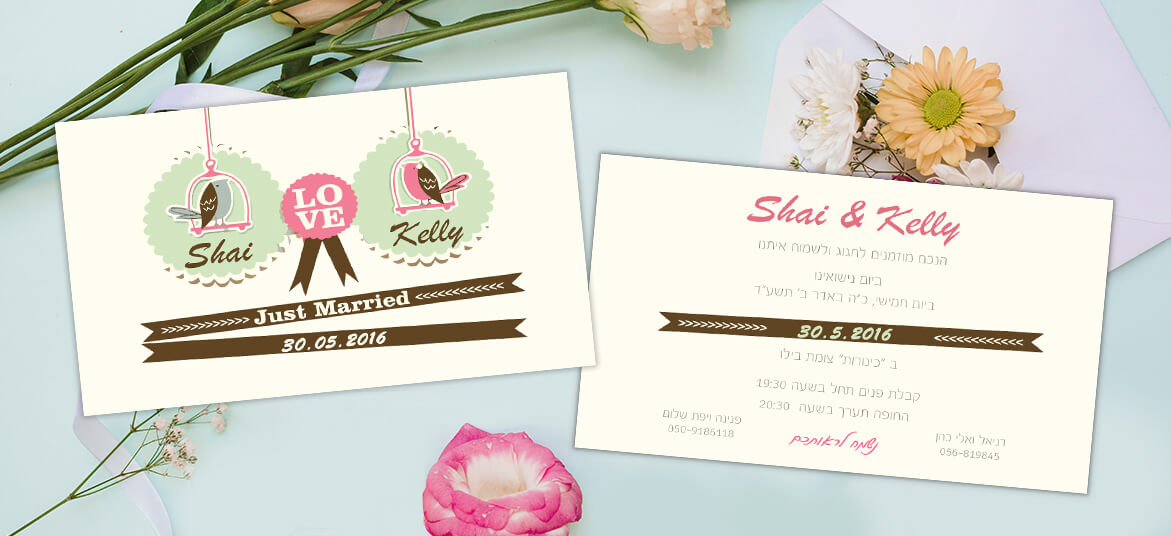 |הזמנה לחתונה עם כLOVE ציפורים- הזמנה בעיצוב אישי, ניתן להוסיף או לשנות אלמנטים כך שיתנו ביטוי לזוגיות ולחתונה שלכם.