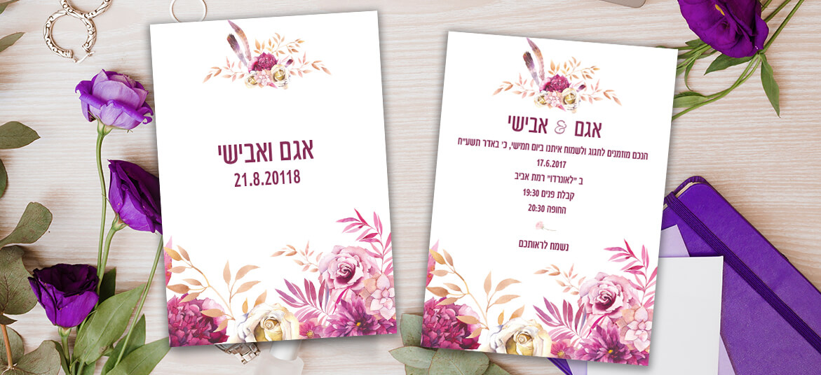 הזמנה לחתונה פרחים בוהו שיק