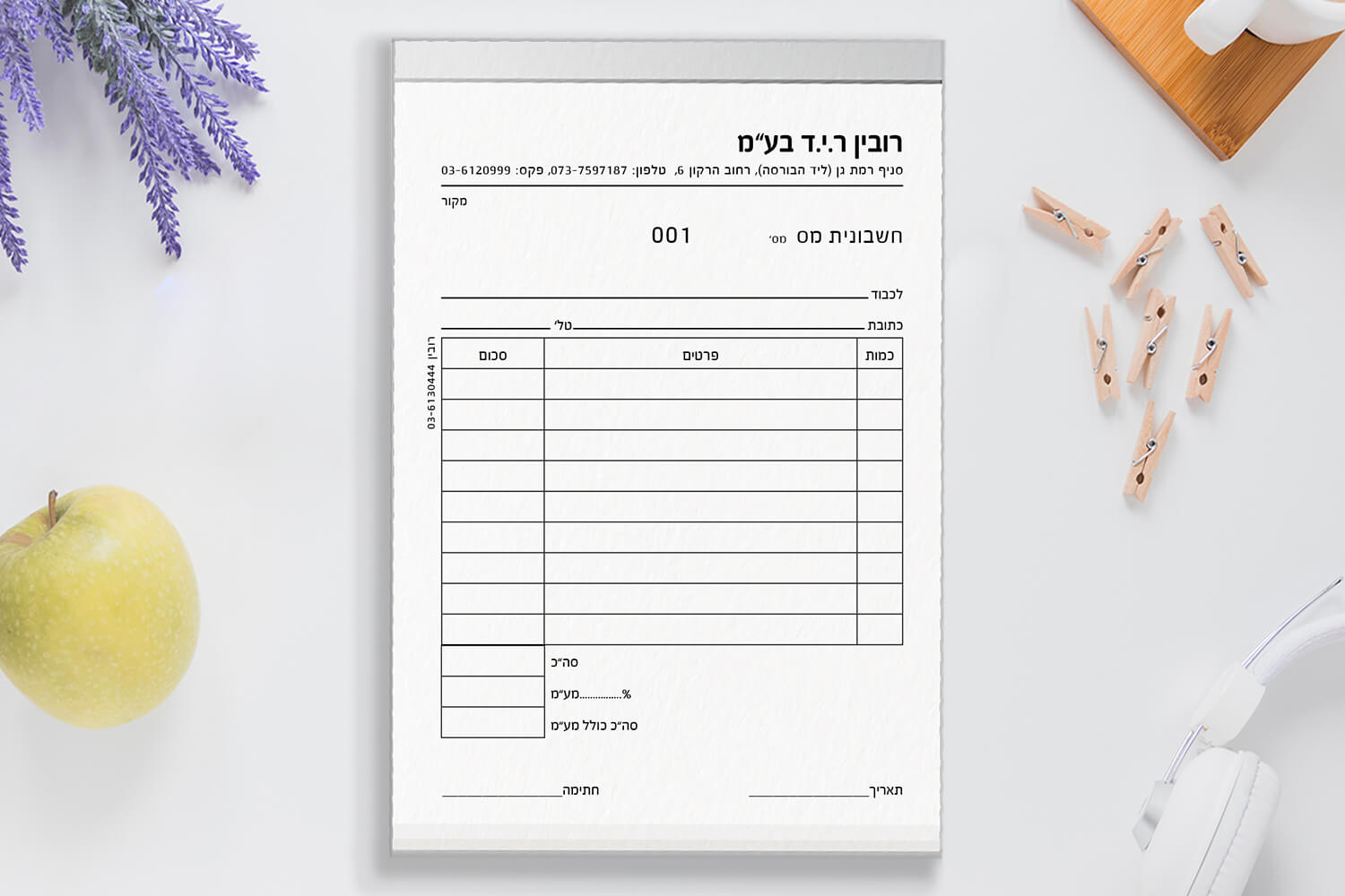 מיתוג נכון של העסק, יורד לפרטים הקטנים ומייצר נוכחות בכל מוצר שהלקוח חוזר איתו הביתה. מתגו את החשבוניות והקבלות שלכם עוד היום!
