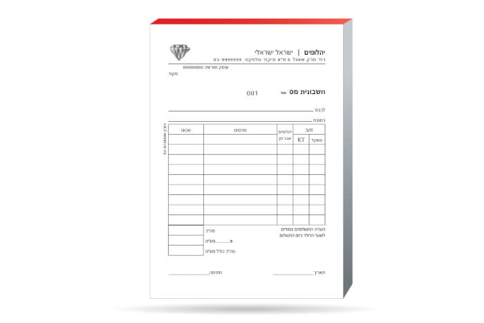 יהלומנים חשבונית בהתאמה אישית. 8 שורות עם מלל מוכן: KT, משקל ועובי, ניתן לשינוי והוספה כך שיתאם את הצרכים שלך.