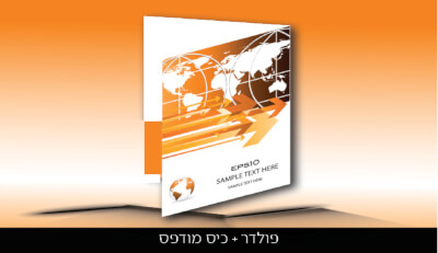 פולדר כיס, בהדפסה מעוצבת בצבע כתום ולבן, באיור המתאים לעולמות החיזוי והחדשנות בשימוש לחברות וכנסים.