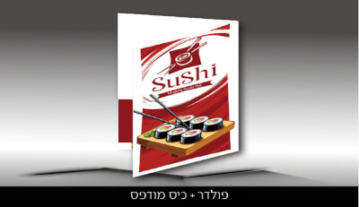 פולדר המודפס בעיצוב טעים עם כיס מודפס ומעוצב בהתאמה, מתאים לרשתות השיווק למזון ולמסעדות.
